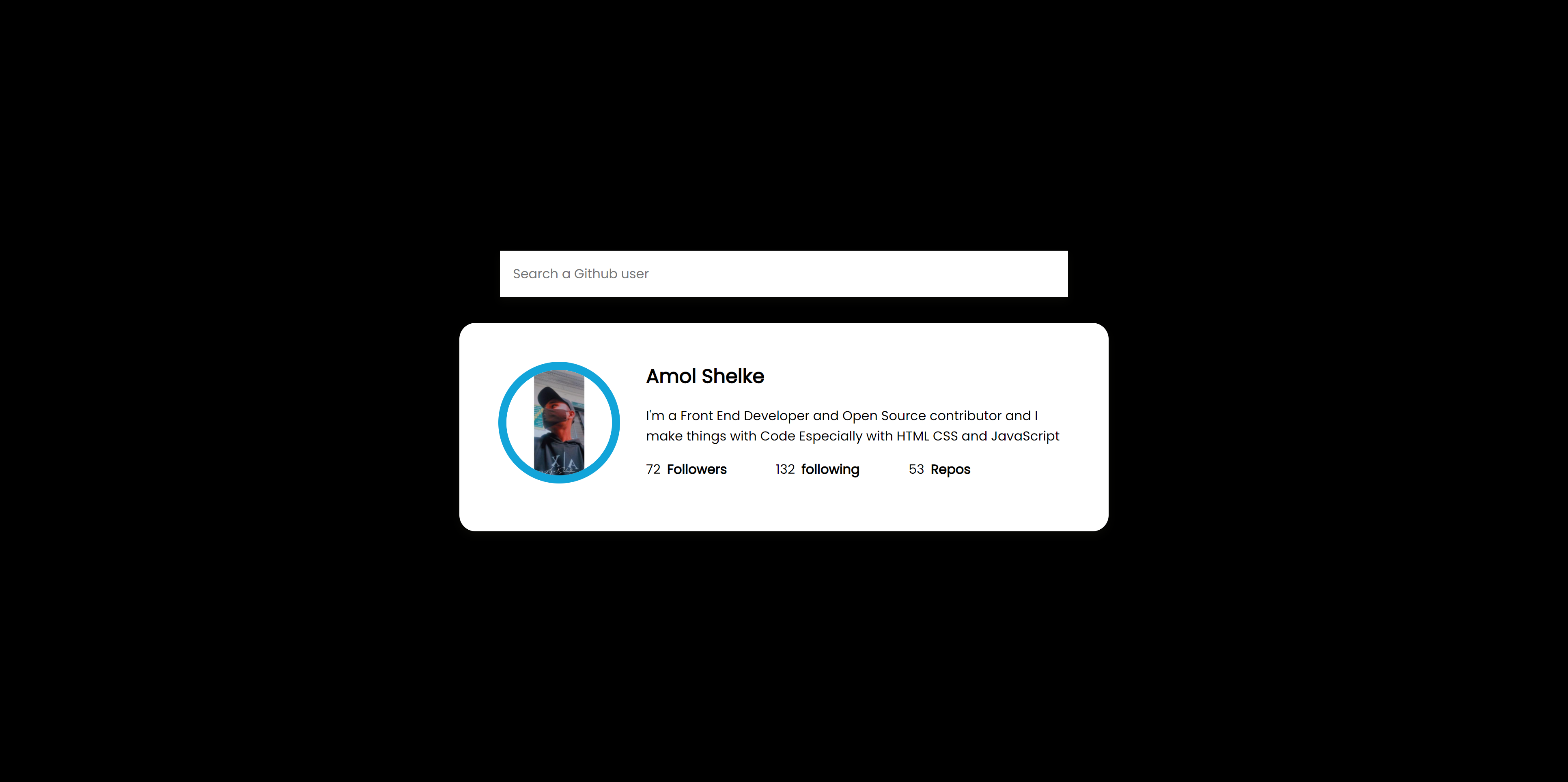 Hello Everyone I am Amol Shelke, I'm a Bachelor student currently pursuing My Bachelor in Computer Application at Dhanwate National College Nagpur Maharashtra. And I'm a Self tought Web Developer specialize in front End. I build front End User friendly UI with HTML CSS and JavaScript. And I'm familiar with Git, Github, and Windows operating system. here I upload my code so you can visit to My Github
